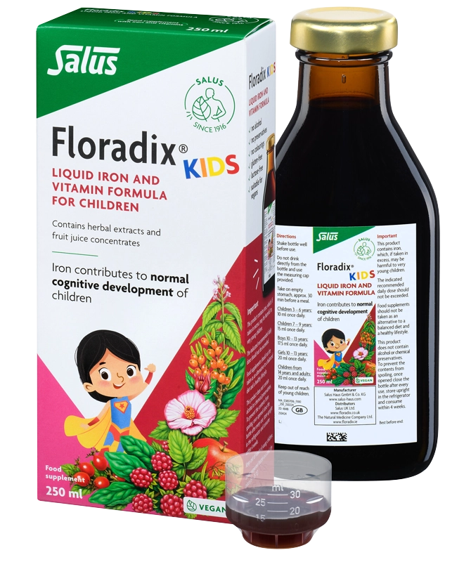 Floradix KIDS has been developed for the nutritional support of children and adolescents. It is based on our well-established Floradix liquid and contains iron which contributes to the normal development of cognitive functions.