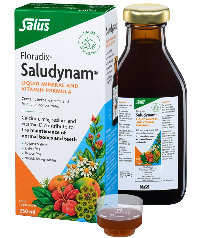 Saludynam liquid is easy to take and helps safeguard the balance of calcium, magnesium, zinc and vitamin D. As these nutrients are already dissolved, they are absorbed more quickly by the digestive system compared to tablets.